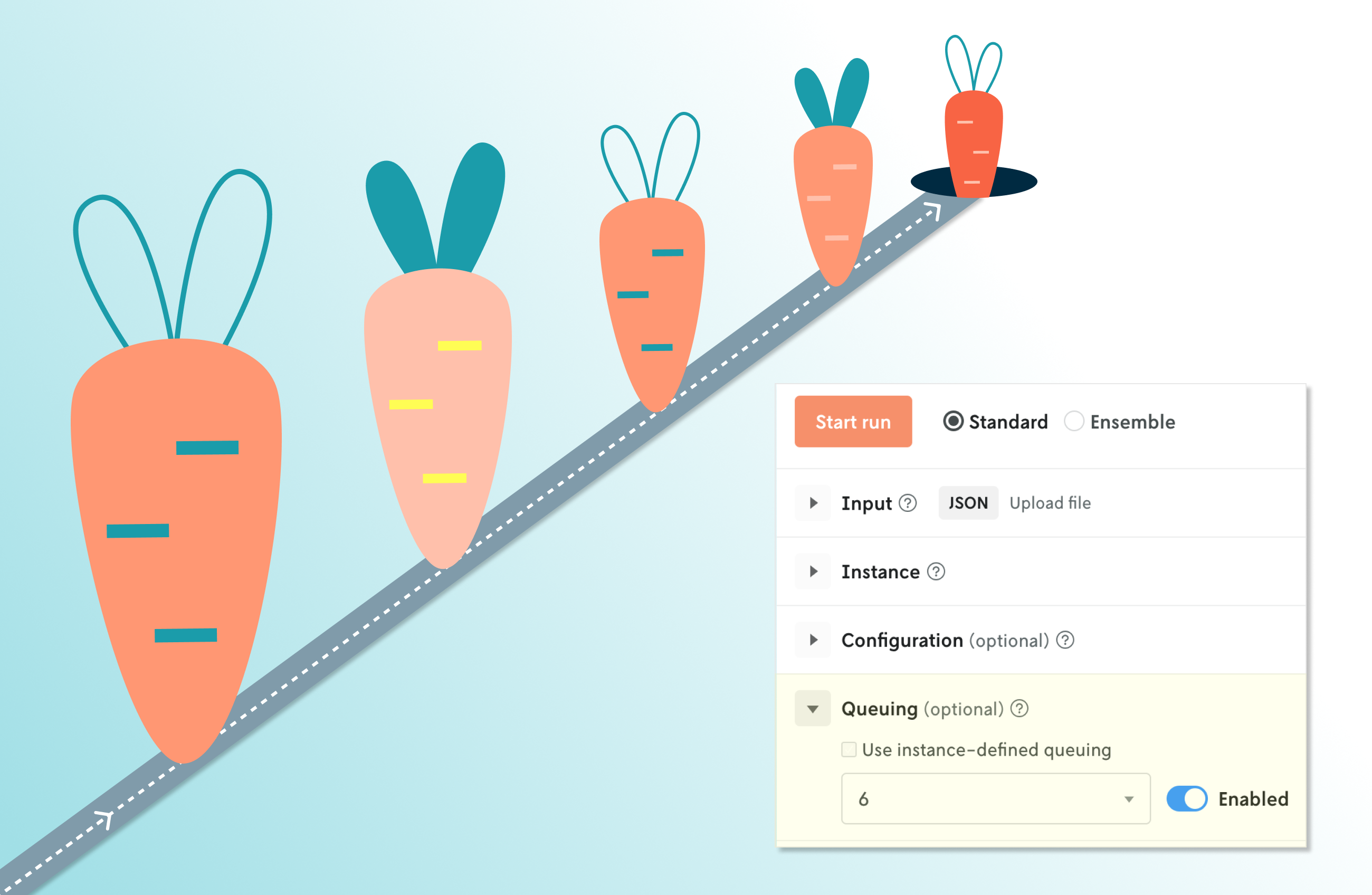 Create and manage queues directly in Nextmv to easily prioritize model runs. Configure prioritization at runtime to prevent blocking the queue with large runs or at the model version level to ensure production runs have precedence.