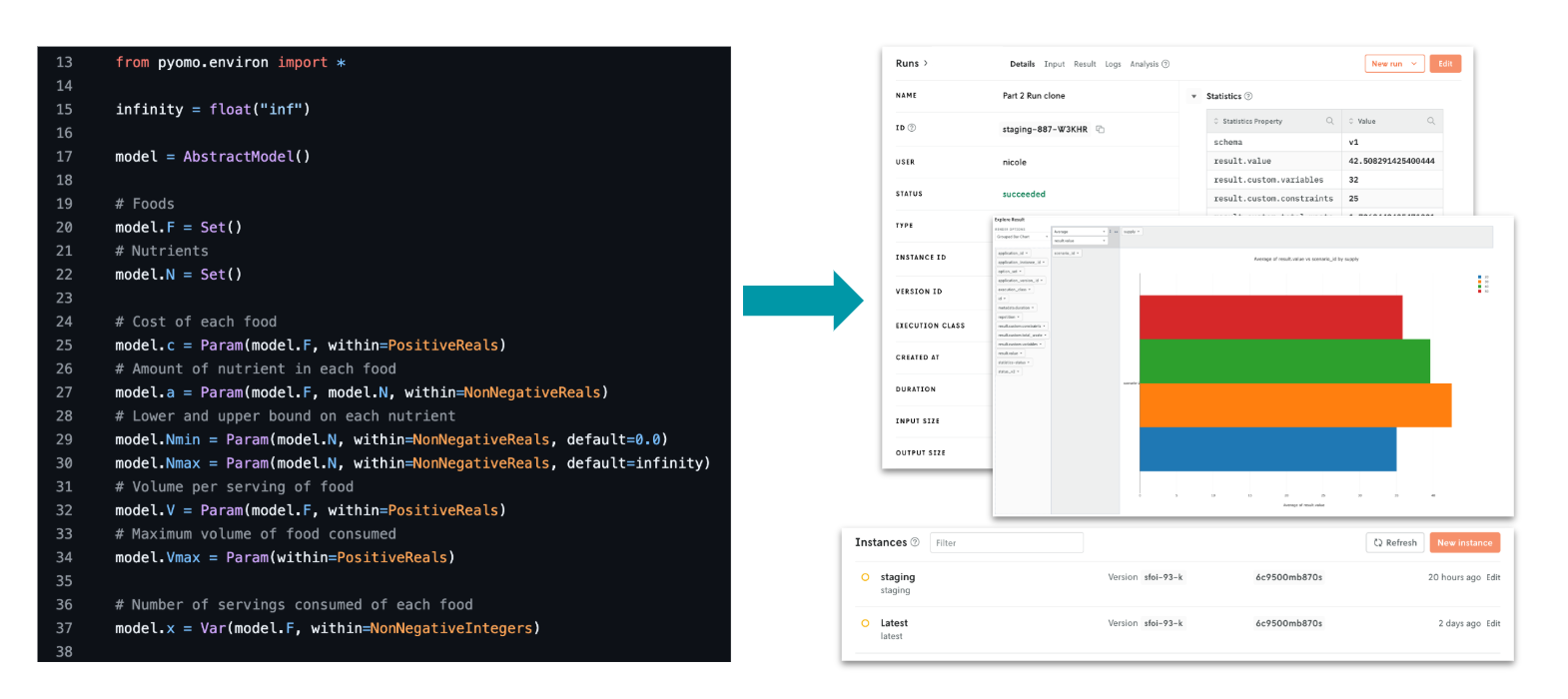 • Connecting the Pyomo model to your Nextmv account with a few simple code changes